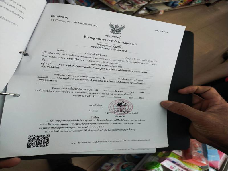 วันที่ 9 ตุลาคม 2568 นายสุวัฒน์ มัตราช ปศุสัตว์จังหวัดเลย มอบหมายให้สำนักงานปศุสัตว์อำเภอภูเรือ โดยนายจรูญ เวียนเทียน เจ้าพนักงานสัตวบาล และคณะ ดำเนินการตรวจสอบร้านขายอาหารสัตว์ในพื้นที่ จำนวน 4 แห่ง ในพื้นที่อำเภอภูเรือ และประชาสัมพันธ์การต่ออายุใบอนุญาตขายอาหารสัตว์ที่จะสิ้นสุดในวันที่ 31 ธันวาคมของทุกปี เพื่อให้เป็นไปตามพระราชบัญญัติควบคุมคุณภาพอาหารสัตว์ พ.ศ. 2558