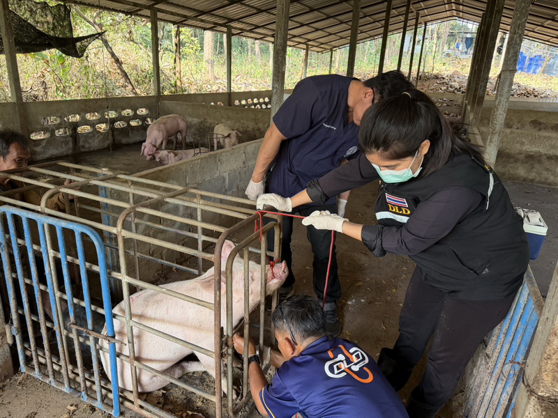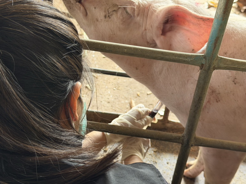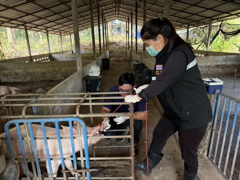 วันที่ 8 ธันวาคม 2568 สำนักงานปศุสัตว์อำเภอภูพาน จังหวัดสกลนคร ดำเนินการเก็บตัวอย่างเลือด(whole blood) และน้ำลายสุกร(oral fluid) ตามโครงการแผนการเฝ้าระวังทางห้องปฏิบัติการของโรคอหิวาต์แอฟริกาในสุกร ประจำปีงบประมาณ พ.ศ.2569 ในพื้นที่อำเภอภูพาน จังหวัดสกลนคร พร้อมทั้งให้คำแนะนำเกษตรกรในด้านการเลี้ยงและการเฝ้าระวังโรคในสุกร